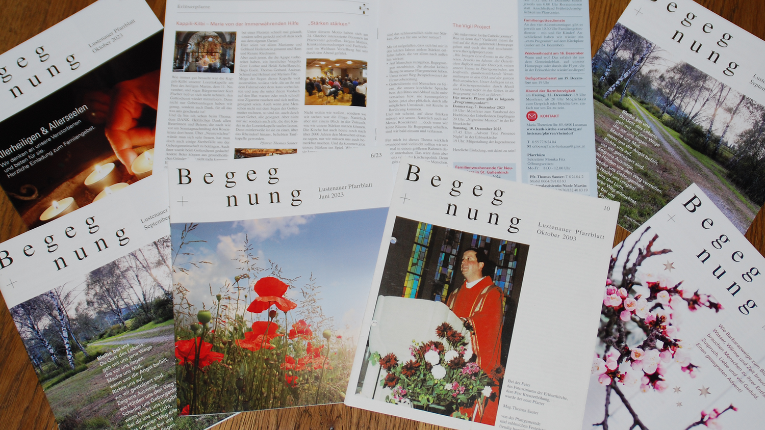 Mit dem Pfarrblatt „Begegnung“ erhältst du aktuelle Infos aus allen drei Pfarren! Das Pfarrblatt erscheint 9 - 10 Mal jährlich, zum Preis von € 12,- pro Jahr.